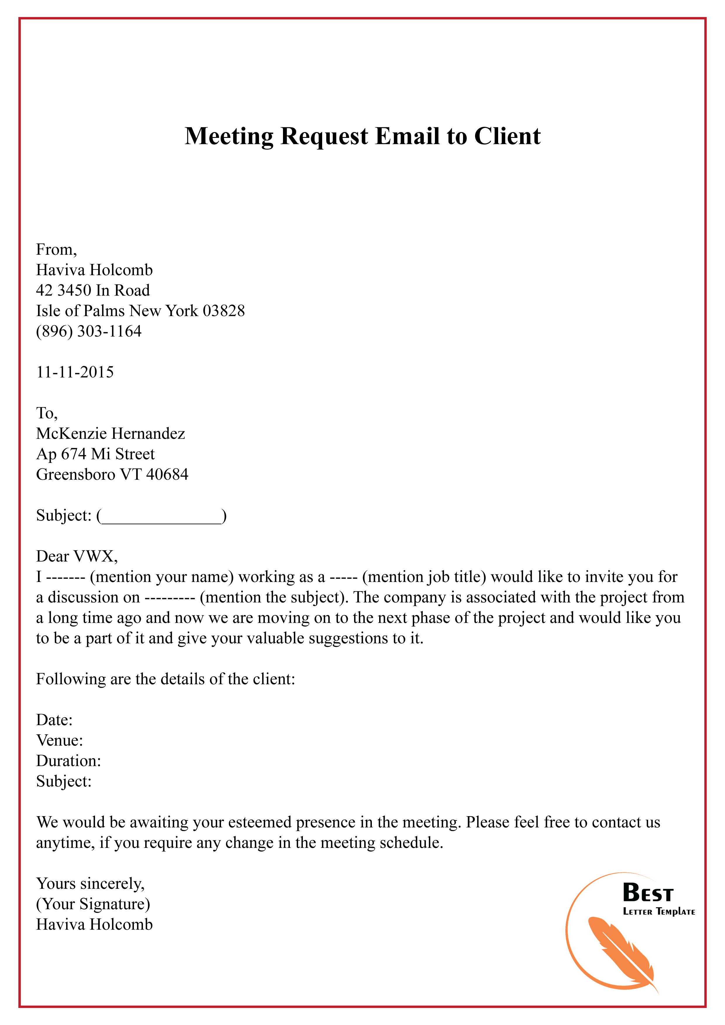 Meeting Request Email – Document Template