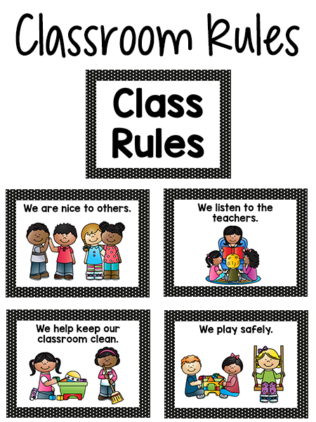 Pre-K Class Rules Posters in Black & White Dot - PreKind…